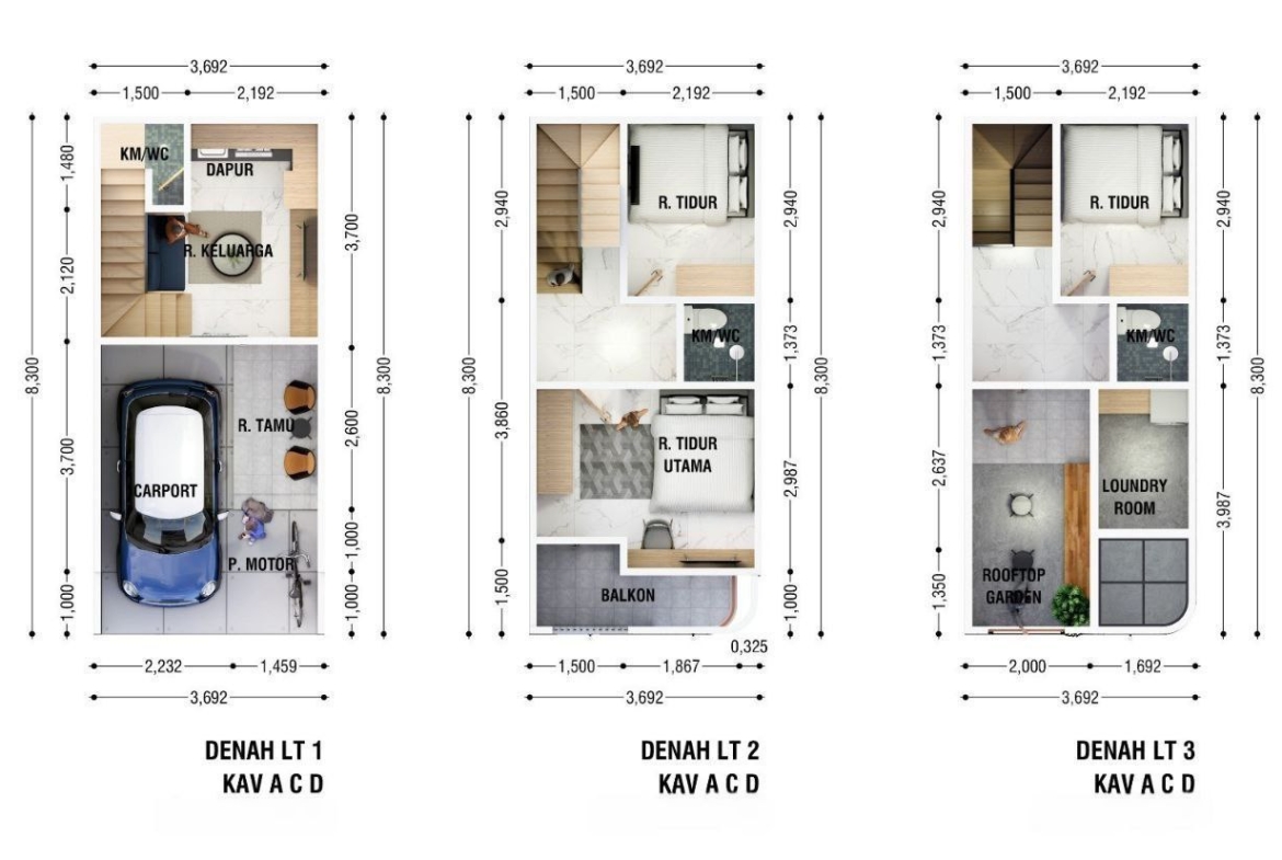 TOWNHOUSE TIGA LANTAI PLUS ROOFTOP